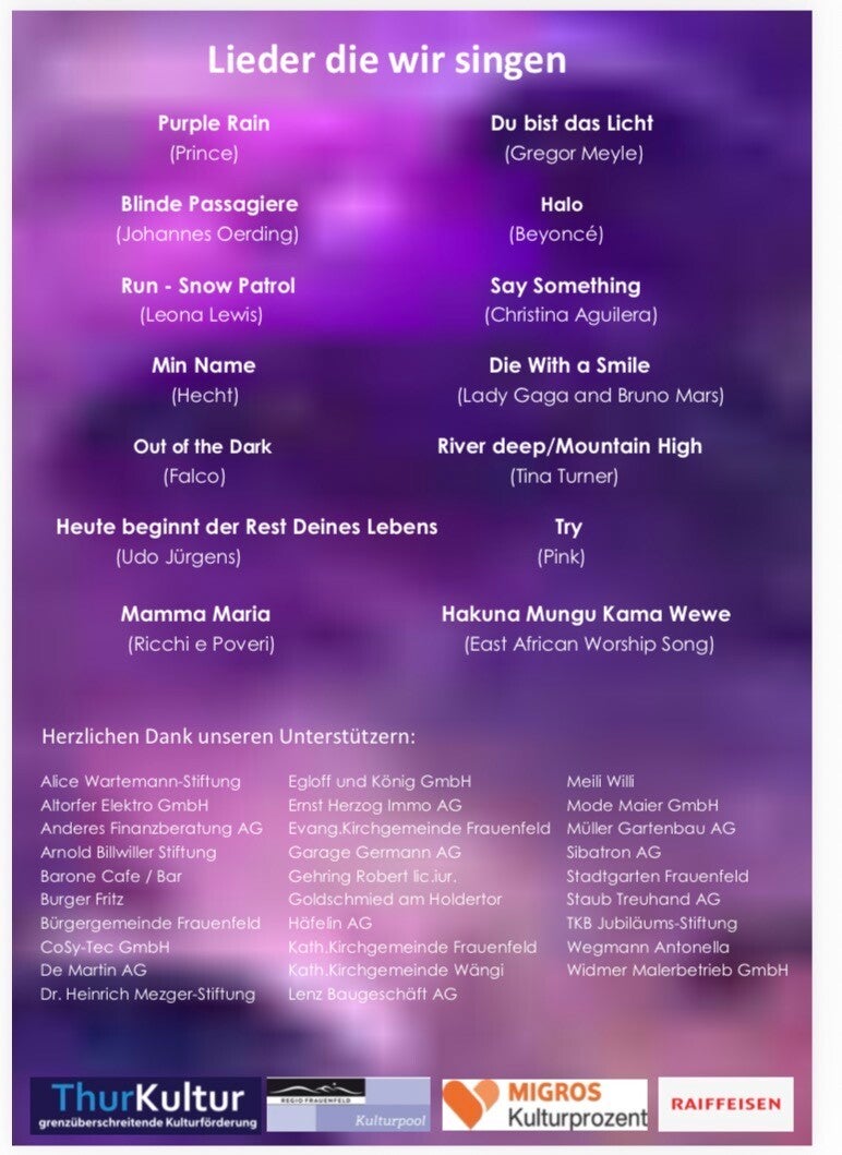 Nach den grossartigen Erfolgen der letzten Jahre sind die Eckdaten für das Chorprojekt 2025 unter dem Motto "Purple Rain" bekannt.