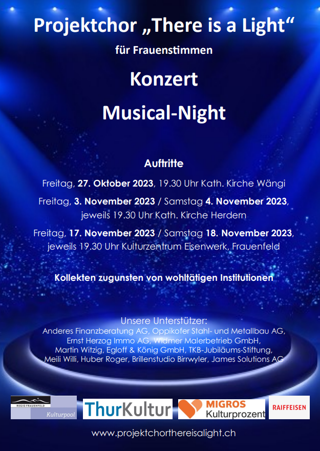 Nach dem grossartigen Erfolg vom ersten Chorprojekt im November 2022 haben sich die Verantwortlichen des Projektchors «There is a Light» für Frauenstimmen entschieden, auch in diesem Jahr unter dem Motto; «Musical Night» Konzerte zu geben.