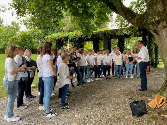 Bereits ist die fünfte Probe seit dem Start des Projektchors vorbei. Die singbegeisterten Projektsängerinnen und der Dirigent füllen den Raum im Stadtgarten mit Liedern wie z.B. "Phantom der Oper", "Aquarius" und "die Schöne und das Biest". Viele weitere Lieder warten darauf einstudiert zu werden...